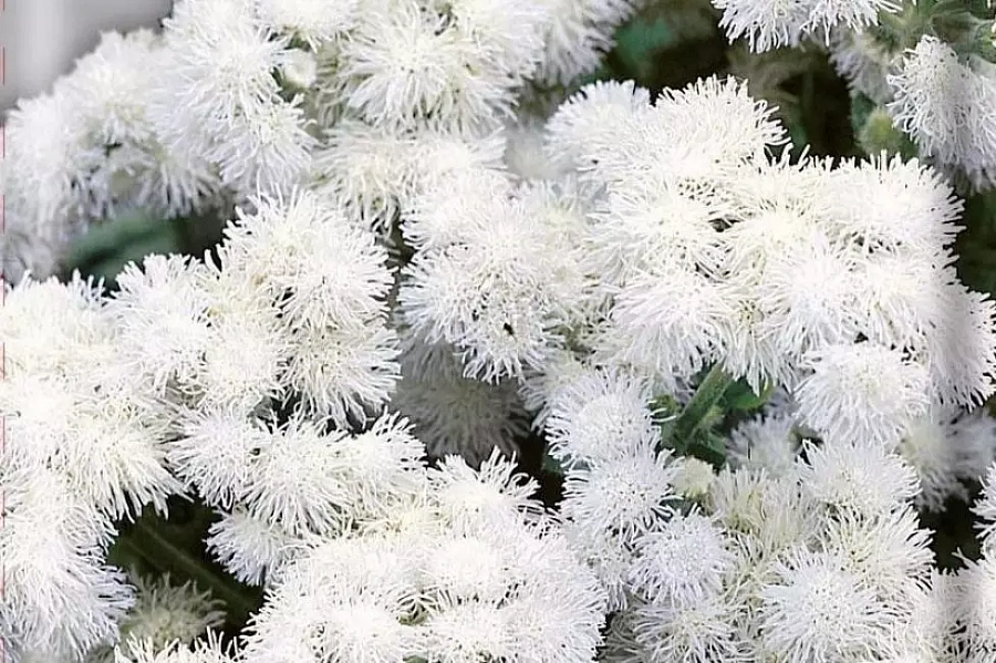 Семена агератума «Белый шар» высевают в марте — апреле на рассаду. Глубина заделки составляет 0,3-0,5 см. Семена прорастают через пару недель при температуре грунта +20 градусов. В открытый грунт рассаду высаживают по схеме 15х20 см, когда минует угроза заморозков. Агератум «Белый шар» — это однолетняя очень теплолюбивая культура, которая в высоту достигает до 55 см. Кустарник отличается шарообразной формой и обильным цветением. С июля до заморозков на растении раскрываются плотные соцветия белого окраса. Однолетник  прекрасно смотрится в любом уголке сада и подходит для выращивания даже неопытным садоводам.