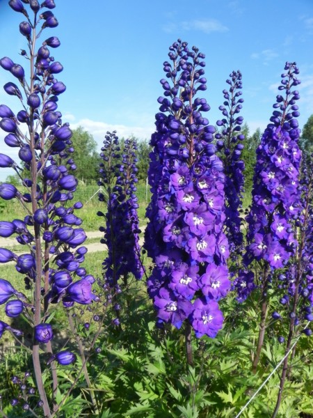 Рассада Дельфиниума Кристел (Christel) – необычный сорт удивительный по своей красоте. Цветки его крупного размера, махровые, редкого темного лилового оттенка, центр которых состоит из неполноценно развитых чашелистиков с яркими белыми крапинками. Высота взрослого уста составляет 1 – 1,3 м. Он не ветвится с прочными побегами. Цветение приходится на конец июля и повторяется снова после обрезки в начале сентября. Рассада предпочитает развиваться на суглинистой или супесчаной почве, удобренной перегноем и нормально увлажненной. При избытке влаги Дельфиниум Кристел начинает болеть. Свежие посадки после проведения полива нужно мульчировать сухим торфом и перегноем для нормализации влажности.