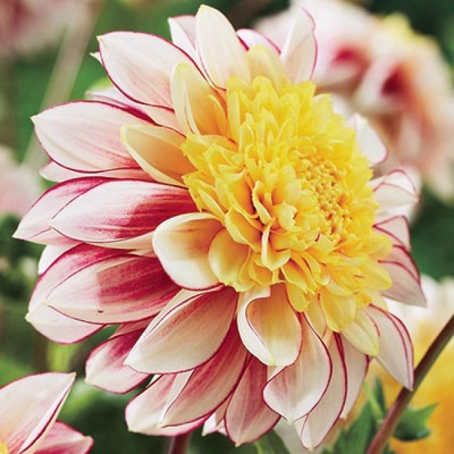 Георгина анемоновидная Полька - это великолепное растение, которое поразит вас своей изысканной красотой. Ее кремово-желтые цветы с тонкой малиновой каймой и штрихом создадут неповторимый акцент в вашем саду. Высота растения может достигать до 110 см, что делает его идеальным выбором для создания живописных цветочных композиций. Листья георгины анемоновидной Полька имеют элегантную форму и придают растению особый шарм.