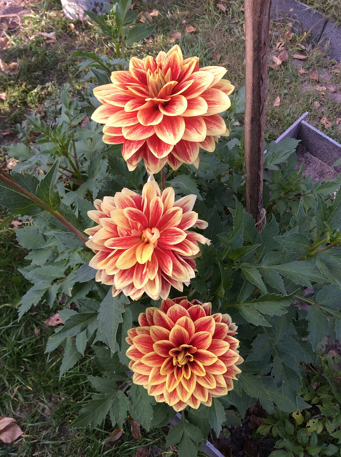 Луковицы георгины Cabellero рекомендуют высаживать в питательную, умеренно влажную почву в мае месяце. Растение хорошо растет в любых условиях. Но если хотите, чтобы культура долго и обильно цвела, то выбирайте для посадки солнечные участки. Высота взрослого многолетника достигает до 90-110 см. Цветочки махровые, крупные, диаметром до 10-15 см, появляются в июне — июле. Основной окрас лепестка — красно-оранжевый. Край украшен желтыми тонкими мазками. Цветут георгины Cabellero до наступления осенних заморозков. На зиму клубни выкапывают и помещают в прохладное место.