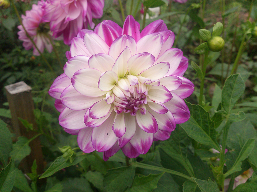 Окраска цветка : белый, с ярко-сиреневым кантом