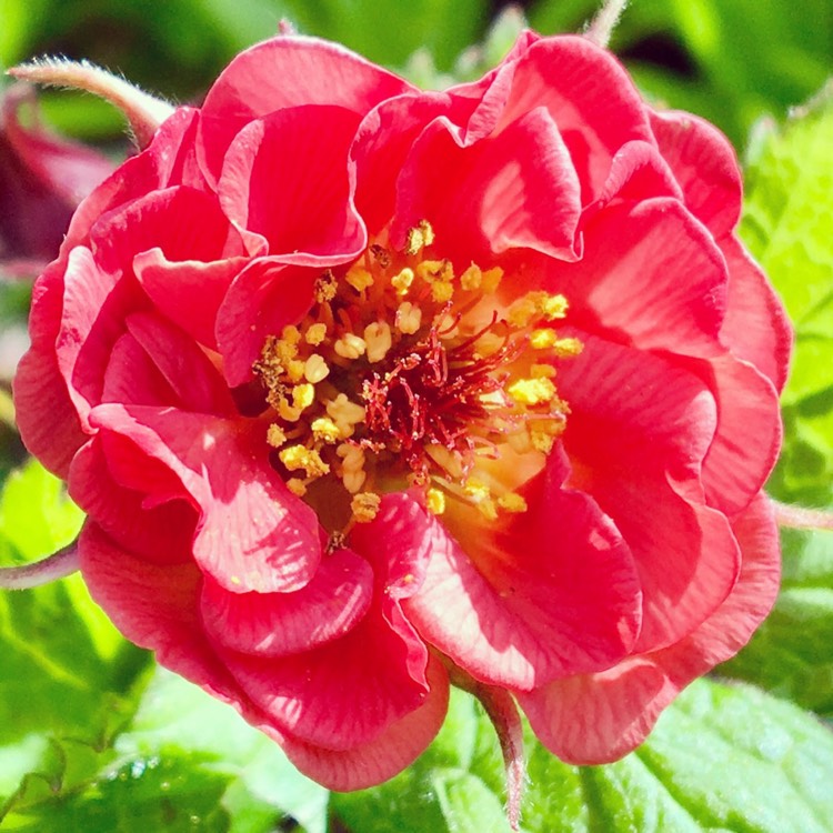 Семена геума махрового Блэйзинг Сансет выращивают для оформления садовых объектов и для срезки. В середине лета на кустах распускаются махровые цветы с лепестками насыщенно-красного оттенка, собранные в букеты по 5–8 штук. Цветение продолжается до конца лета.