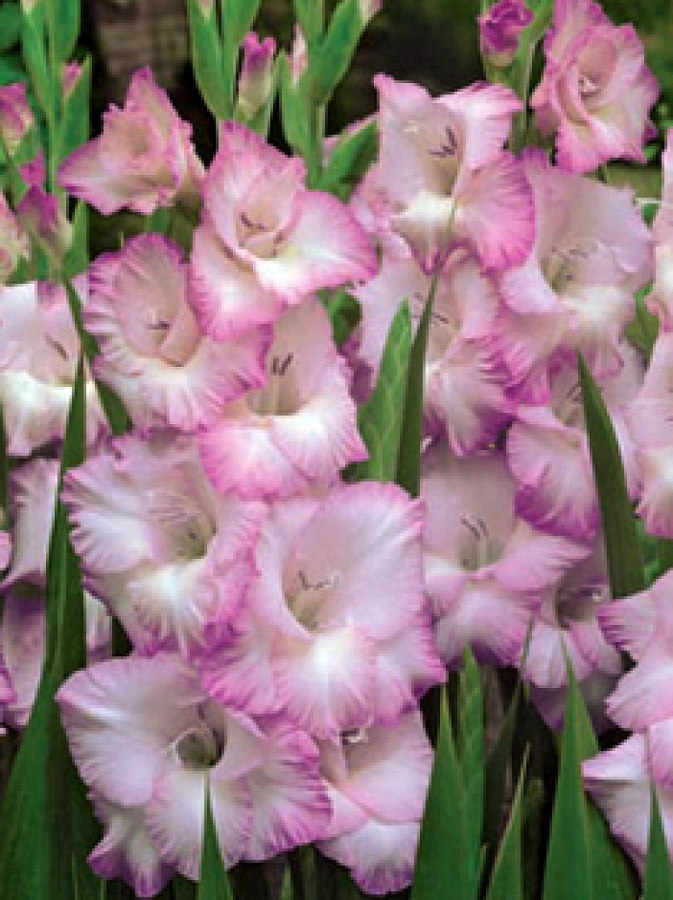 Луковицы гладиолуса гибридного Beauty of Holland высаживают в лунки на расстоянии 30-35 см. Место для посадки выбирают солнечное, защищенное от ветра, без застоя влаги, с легким, дренированным грунтом. Сорт высокорослый. Взрослые побеги могут достигать в высоту от 50 до 150 см. Листья мечевидные, насыщенно-зеленого окраса. Цветочки распускаются в июле. Они собраны в длинные плотные соцветия. Окраска лепестков очень нежная: светло-розовые оттенок основной части лепестка красиво сочетается с более темным розово-сиреневым волнистым краем. Цветут гладиолусы гибридные Beauty of Holland до сентября.