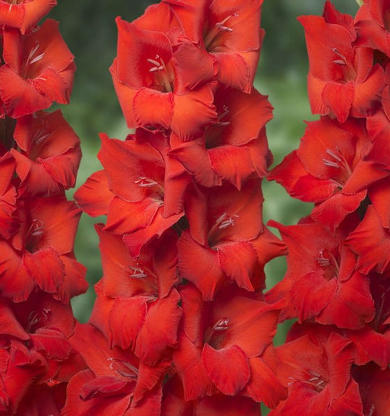 Гладиолус крупноцветковый "Алгарве" - это великолепное растение с красивыми крупными цветками, окрашенными в яркий красный цвет с белой серединой. Его стебель достигает высоты от 80 до 110 см, что делает его заметным акцентом в любом саду. Листья гладиолуса имеют стройную форму и придают растению изящный вид.