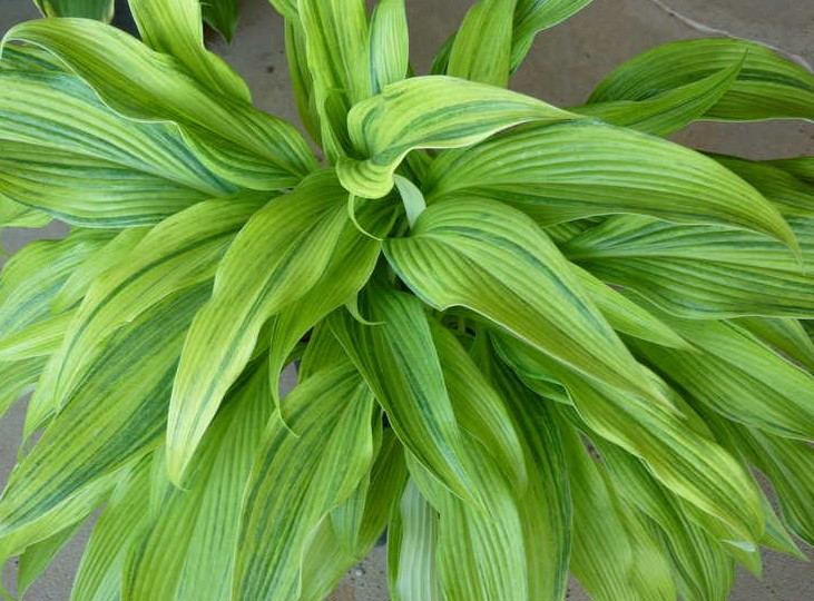 Хоста Гибридная Хьюга Ураджиро (Hyuga Urajiro) необычное, экзотическое растение для вашего сада родам из Японии.  Используется для высадки в садах, цветниках, альпийских горках, а также будет прекрасно смотрятся на вашей веранде. Куст компактный, не расползается, листья тонкие, ланцетные, острые, с изумрудно, зелеными и лаймовых линий. Одна из очень немногих хост с полосатым рисунком. А в середине – конце лета на кусте формируется несколько цветоносов с изящными лавандовыми цветами. Специалисты отмечают высокую декоративность растения. Характерные особенности растения: