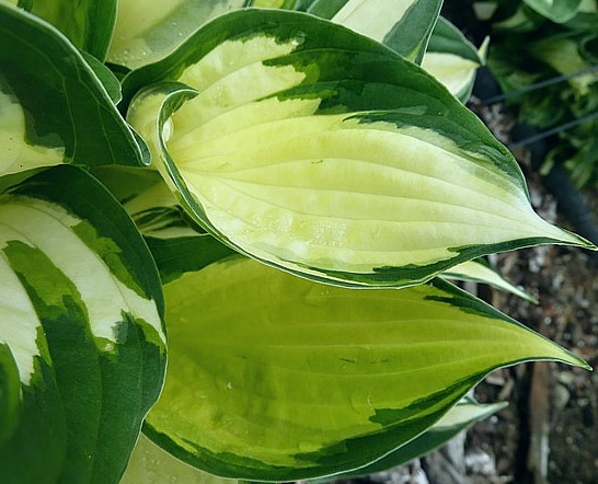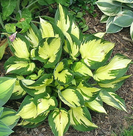 • Весенняя окраска листвы : Кремово-желтый центр листа контрастирует с темно-зеленым краем.