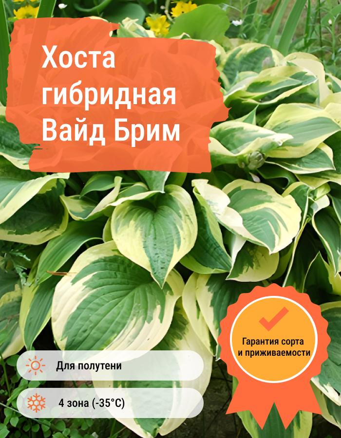 Рассада хосты Вайд брим (Wide Brim) будет интересна как садоводам-любителям, так и специалистам в области ландшафтного дизайна. Такие особенности растения как значительная теневыносливость и неприхотливость к грунту, на котором оно выращивается обеспечивает возможность создавать интересные композиции даже на самых затененных участках сада. Хоста Вайд брим отличается высокой декоративностью, что связано с пестрой окраской листьев – листы темно зеленого цвета, иногда с голубоватым оттенком, и неровной широкой светлой каймой. Образует цветы лиловой расцветки.
