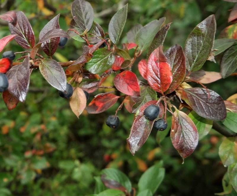 - Кизильник блестящий – кустарник до 3 м высотой. Темно-зеленые, блестящие листья образуют густую крону. Цветет Кизильник в мае-июне, мелкими розоватыми цветками;