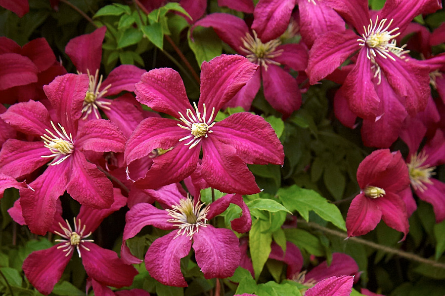 Саженцы клематиса гибридного Мадам Джулия Корревон (Madame Julia Correvon) высаживают на солнечные участки, защищенные от ветра и сквозняков. Наиболее подходящая для выращивания почва - суглинок, со слабокислой или нейтральной реакцией среды. Цветки у клематиса гибридного Мадам Джулия Корревон (Madame Julia Correvon) винно-красные, диаметром 8-12 см. Цветет обильно и продолжительно с июня по сентябрь. Применяется для озеленения беседок, стен, оград и заборов. Подходит одиночных и групповых посадок, например, между кустарниками хвойниками не требующих сильной ежегодной обрезки.