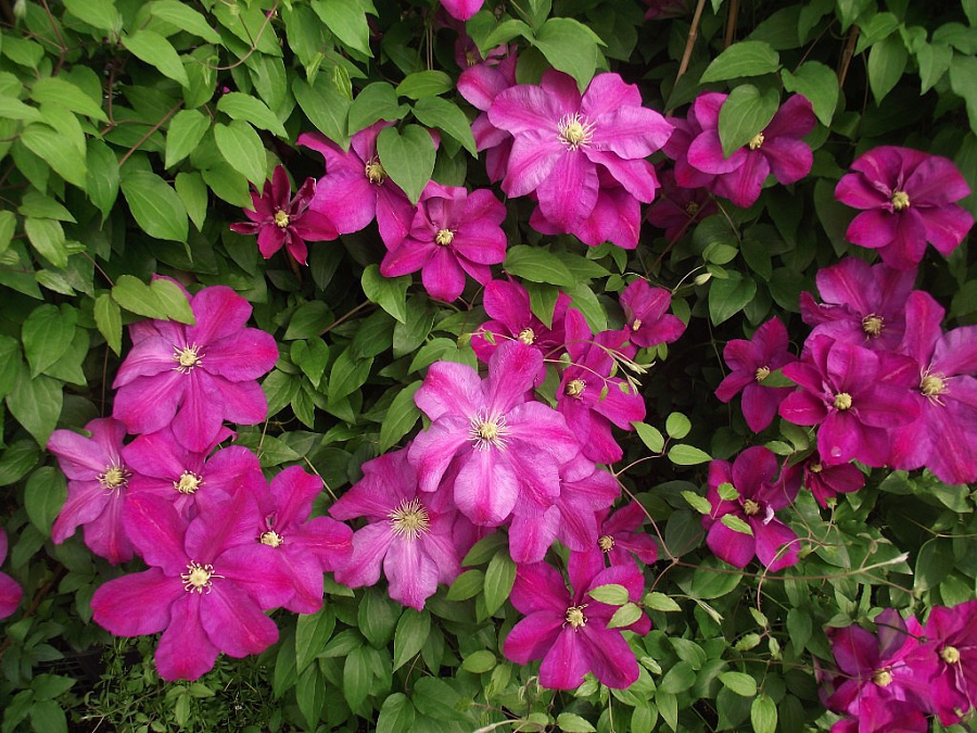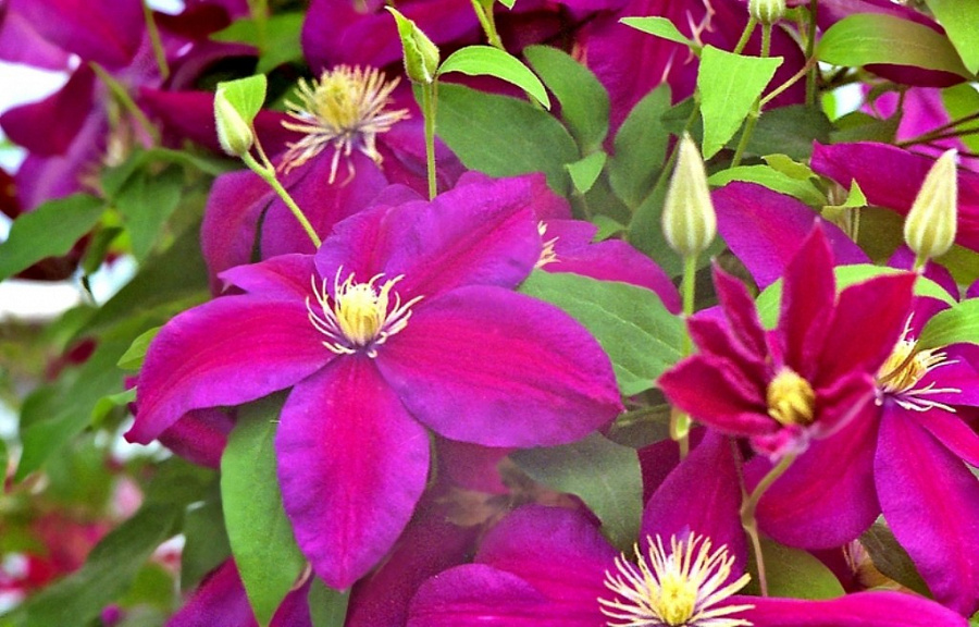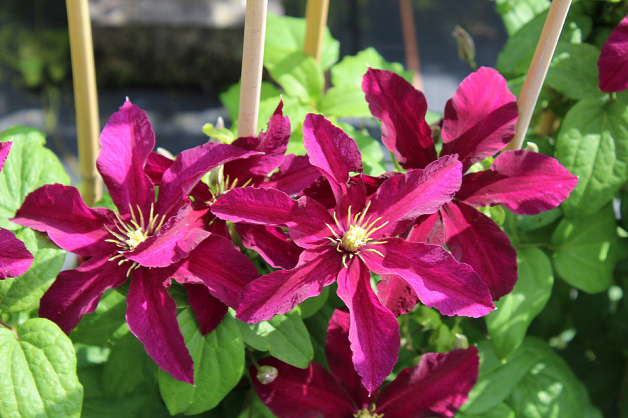 Клематис гибридный Сансет (Sunset) одинаково хорошо растет как на освещенных местах, так и в полутени. В высоту растение достигает 200-300 см, карабкается по специально сооруженным и естественным опорам. Саженцы клематиса гибридного Сансет (Sunset) применяют для благоустройства садовых участков и городских зон отдыха. Цветение клематиса гибридного Сансет (Sunset) обильное и продолжительное. Начинается в мае и заканчивается к концу сентября. Цветок красно-розового окраса в диаметре достигает 12-15 см.