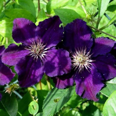 Клематис Rasputin - вьющееся декоративное садовое растение, достигает высоты 2.0 – 3.0 м. Цветки диаметром 8-12 см, очень тёмные пурпурно-фиолетовые, с обратной стороны светлые, серо-фиолетовые. Лепестки с волнистыми краями. Тычинки с пурпурными пыльниками на зеленоватых тычиночных нитях. Период цветения: июнь-сентябрь. За опоры цепляется листовыми черешками. Можно выращивать у решёток, колышков и других садовых опор, также может карабкаться по натуральным опорам (лиственным либо хвойным кустарникам, а также полукустарникам). Красиво смотрится на светлом фоне. Пригоден для выращивания в контейнерах.