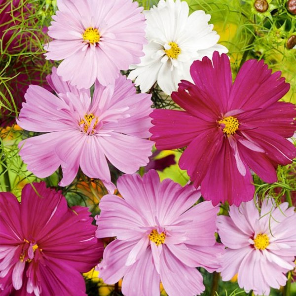 Семена космеи «Психе» (Psikhe) высевают сразу в открытую почву. Место выбирают открытое, солнечное, с легкой почвой. Между рассадой космеи «Психе» необходимо соблюдать расстояние до 30 см. Высота однолетника варьируется от 80 до 120 см. Цветочки появляются в начале июля. Период цветения продолжается до первых заморозков. Цветы собираются в соцветия-корзинки. Окраска бывает белой, розовой, карминовой. Используют сорт семян космеи «Психе» для создания клумб и сборных цветников, оформления бордюров и миксбордеров. Также цветок долго может стоять в букете.