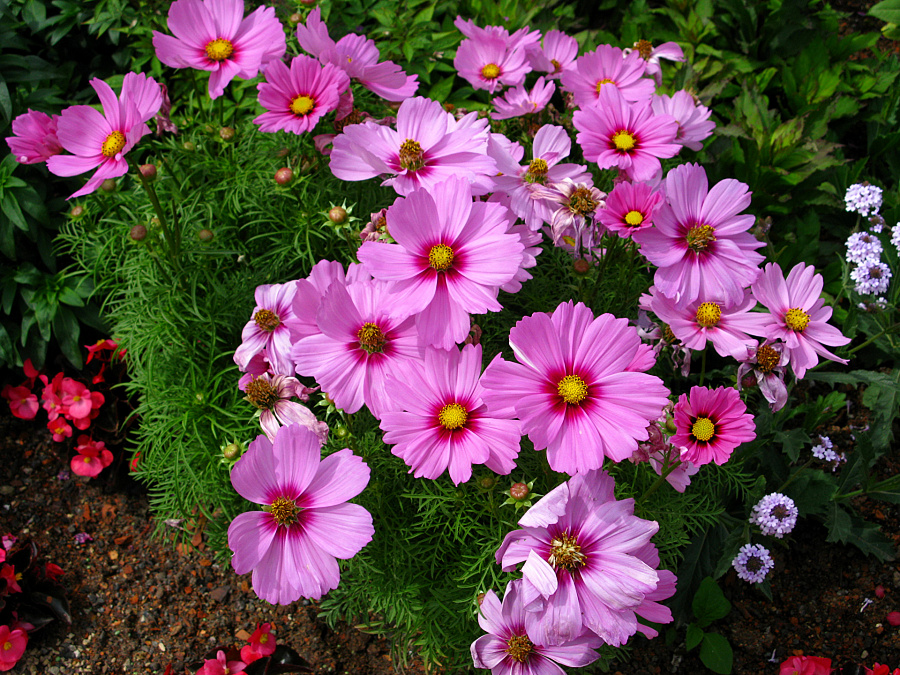 Это растение любит солнечные места, поэтому выберите для него яркое место в саду. Космея сенсация розовая не требует сложного ухода: достаточно регулярного полива и удобрений для плодородных почв.