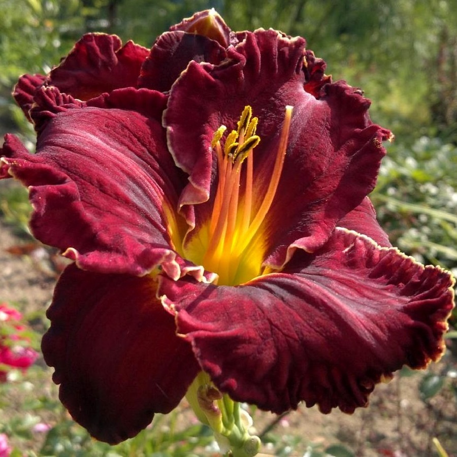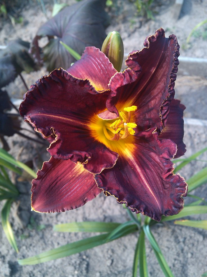 • невосприимчивость семян к бактериям. Цветущее растение представляет собой раскидистый куст с высокими цветоносами и крупными бутонами темно-фиолетового оттенка. Контраст темным лепесткам и практически черному глазку создает сочное лимонное горлышко. Лепестки имеют гофрированные края и тонкую кайму белого цвета. Первое цветение лилейника Пурплликоус можно наблюдать уже в июле месяце.
