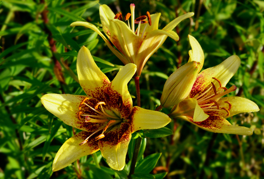 Окраска цветка : ярко-жёлтый с бордово-красным напылением в середине