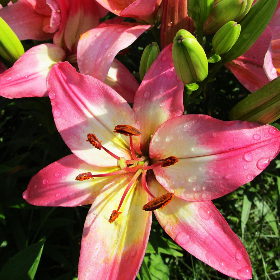 Луковицы лилии Lollypop абсолютно неприхотливы в уходе и подходят для выращивания даже малоопытному садоводу. Высаживают растение на хорошо освещенных участках в лунки на расстоянии до 25 см. Культура любит питательную рыхлую почву, хорошо зимует без укрытия. Вырастает лилия Lollypop в высоту до 120 см. Цветки крупные, чашевидные, диаметром до 15-20 см. Лепестки двухцветные: серединка белая, а кончики ярко-малиновые. Особенность сорта – практически полное отсутствие аромата. Растение используют для цветников и выращивания на срез.