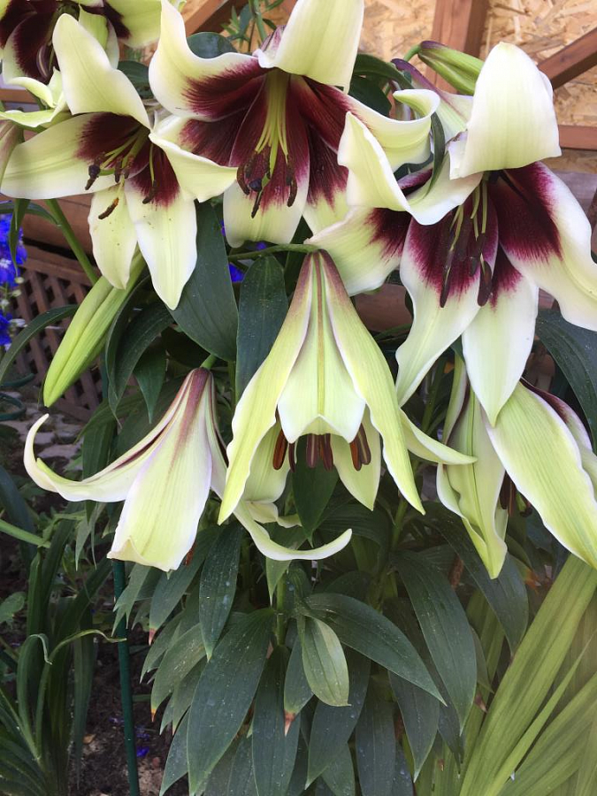 Саженцы и рассада Лилии видовой Куси Мая (Lilium) относятся к первым гибридам Непальской лилии, показанным на цветочной выставке в Челси в 2008 году. Там этот сорт произвел настоящий фурор. Его отличают мощный цветонос (высотой около 1,5 метров), большие тяжелые цветы (диаметр 26 см) и необычайно яркая окраска цветка. Окраска цветов не позволит пройти мимо этой красавицы ― они имеют белый цвет и пурпурно-бордовое пятно в центре. На одном кусте расцветает 1-2 цветка.