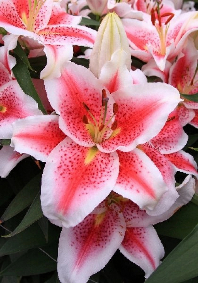 Луковицы лилии восточной Айдахо (Lilium Oriental Hybrids Idaho) — настоящая экзотика, которую легко вырастить в саду или в теплице. Растение быстро адаптируется к климатическим условиям, без труда переносит летнюю жару и зимние морозы. Если регулярно подкармливать лилии, они могут расти до 5 лет без пересадки на одном месте. Главное украшение сорта Айдахо — это его особенно крупные цветы (до 23 см в диаметре). Они появляются в июле и августе на прочных стеблях (до 120 см в высоту). Лепестки с ярко-малиновым центром (цвет фламинго), белыми махровыми краями и ярким красным крапом. Они долго не осыпаются после среза, поэтому лилии популярны в нарядных летних букетах.