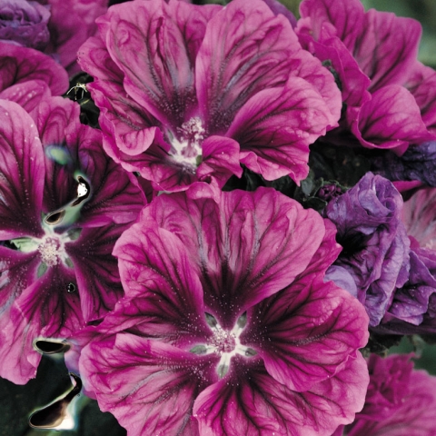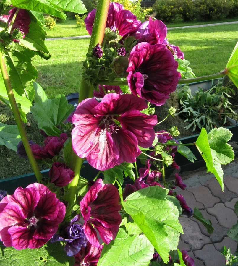 Рассада мальвы мавританской (Malva mauritiana) имеет компактный и аккуратный вид. Вырастает в высоту около 40-50 см. Стебель достаточно прочный, а листики крупные. Цветы имеют интересный окрас, а именно сиреневый с чернильными штрихами. Цветет обильно в августе-сентябре. Достоинства мальвы мавританской:
