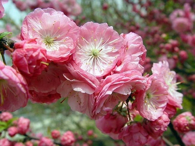 Саженцы Миндаля трехлопастного на штамбе (Prunus triloba) – эффектный кустарник, сменяющий листья каждый сезон. За свою красоту многие называют его японской вишней, но ничего общего, кроме внешнего сходства с сакурой у него нет. Цветы располагаются на побегах, образуют группку из двух бутонов. Лепестки имеют разные оттенки розового цвета. Цветёт этот вид миндаля в апреле-мае. Листья появляются после того, как опадут бутоны. Они плотно облепляют ветви. Миндаль хорошо растёт на солнце и в полутени. Не боится морозов, но первые бутоны могут пострадать от ночных заморозков. Растение подходит как для сада, так и для городского ландшафта.