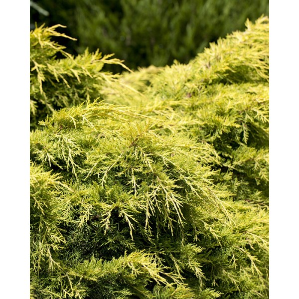 Саженцы можжевельника Пфитцериана Голден Сауке (Golden Saucer), который относится к стелющимся сортам этого растения, хорошо приживаются. С возрастом концы побегов немного приподнимаются, образуя характерную крону-блюдце. В период роста хвоя имеет светло-зеленый оттенок с золотыми переливами. Крупномеры отличаются активным ростом и неприхотливостью к почвам. Этот сорт чаще всего используют для оформления небольших садов или ландшафтных композиций. Можжевельник Пфитцериана Голден Сауке достаточно зимостоек и светолюбив, в тени окраска хвои может тускнеть. Хорошо переносит нерегулярный полив.