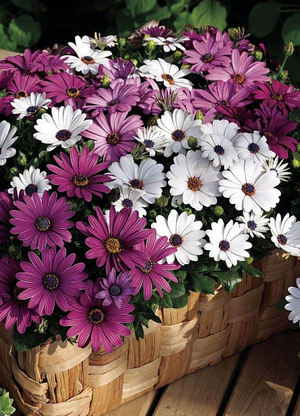 Остеоспермум смесь окрасок - это настоящее воплощение радуги в вашем саду! Это растение поразит вас своей разнообразной окраской цветков, которая привлечет внимание всех прохожих. Высота до 25 см делает его идеальным для миксбордеров и создания ярких цветочных композиций. Листья остеоспермума имеют интересную форму и придают растению особый шарм.