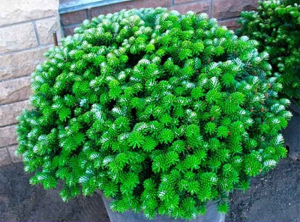 Саженцы пихты корейской Бриллиант (Brillant): пушистые карликовые кустарники прямо искрящиеся яркими зелеными хвоинками. Густота кроны придает крупномерам мягкую округлую форму. Хвоя короткая, снизу имеет серебристые полоски. Максимальная высота кустов не превышает 0,6 м. Пихта корейская Бриллиант подходит для выращивания в контейнерах и подходит для формирования бонсаи.