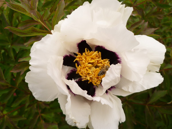 Саженцы пиона древовидного Снежный лотос (Paeonia Suffruticosa) отличаются необычным цветением. Кусты высокорослые, до 1,2 метров. Сорт морозостойкий, выдерживает похолодания до минус 29 градусов. Пион предпочитает легкие плодородные грунты. Высаживать рекомендуется на солнечных участках или в полутени. У этого сорта необычные соцветия, похожие на дикие пионы. Цветки полумахровые, лепестки белого оттенка с бордовыми полосами по середине. Тычинки хорошо заметны. Диаметр цветков от 18 до 20 сантиметров. Распускаются бутоны в мае и цветут до примерно до июня.