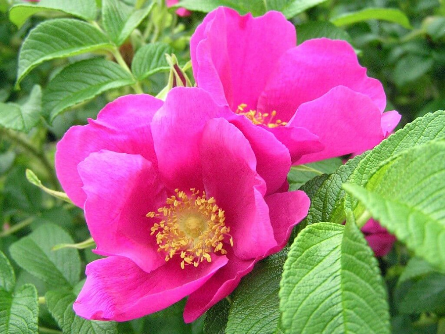 Саженцы розы морщинистой Рубра (Rubra), которая поражает воображение садоводов своими крупными малиново-красными ароматными цветками, отличаются цветением с начала лета и до середины осени. Интересным считается явление, когда рядом с уже созревшими плодами распускаются цветочки. Крупномеры этого растения приживаются практически на любых почвах, справляются даже с самыми суровыми морозами. Обильное цветение наблюдается на солнечных участках. Роза морщинистая Рубра идеально подходит для тех, кто хочет украсить свой участок красивыми, но неприхотливыми кустарниками.