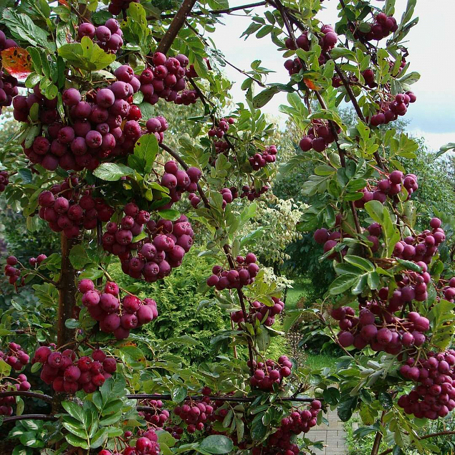 Саженцы рябины обыкновенной Гранатная любят дерново-слабоподзолистые суглинки, отзывчивы на органические удобрения. Сорт зимостоек, свето- и влаголюбив, но застоя воды не выносит. Для придание дереву более декоративной формы рекомендуют формировать его в кустовидной или разреженно-ярусной форме, а также регулярно снижать до трех метров в высоту. Цветки рябины обыкновенной Гранатная мелкие, белые, собраны в крупные щитковидные соцветия. Плоды шаровидные, бордово-гранатовой окраски, кисло-сладкие, чуть терпкие, без горечи, массой до 1,6 граммов. Пригодны для приготовления варенья.