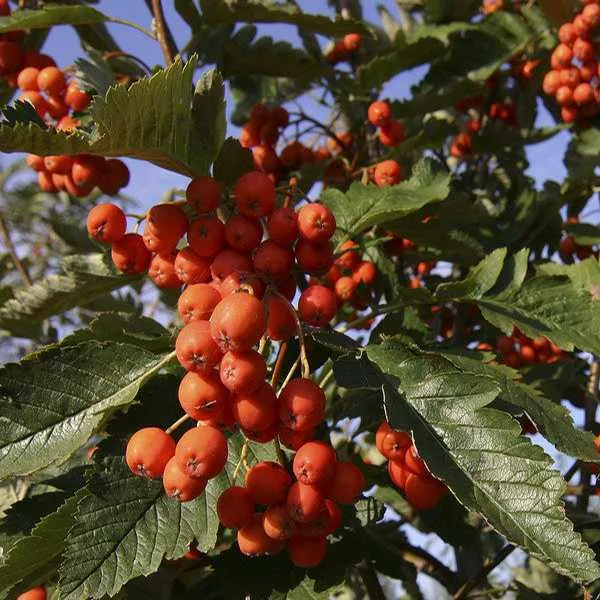 Саженцы Рябины тюрингская Фастигиата (Fastigiata) – гибридного вид завезённый в начале 20ого века из Англии. Он относительно не высокий – 5-7 метров, а за счёт вытянутой кроны выглядит довольно компактно. С возрастом становится более округлой. В мае начинается период цветения, соцветие не много, но белые грозди цветов поистине можно назвать украшением сада. Созревшие плоды несут сугубо декоративный характер, они невкусные, зато радуют глаз своей яркой оранжевой окраской. Крону рябины стоит подрезать, чтобы она выглядела ещё лучше, это следует делать весною. Дерево переносит зиму хорошо, но любит солнечный свет, хотя при необходимости можно высадить в полутень.