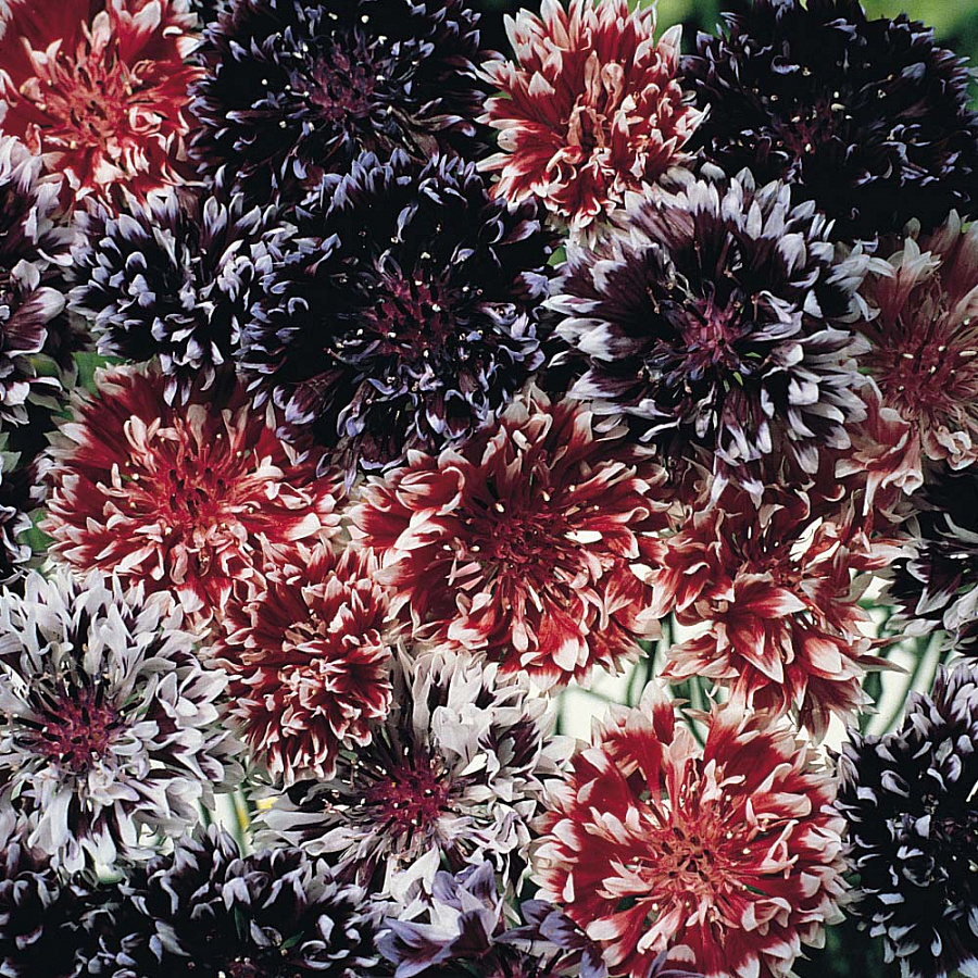 Семена василька (волошки) Фрости Микс пользуются популярностью благодаря оригинальной расцветке цветочных лепестков — их кончики окрашены белым. Смесь содержит несколько сортов, позволяющих без труда создать разноцветную клумбу, заполнив ее белыми, фиолетовыми, синими, красными и бордовыми цветами. Для растения характерно продолжительное цветение, которое длится с июня до сентября. Семена василька (волошки) Фрости Микс предпочитают хорошо освещенные участки, а почва должна быть рыхлой, питательной, с нейтральной кислотностью. Кусты, вырастающие до 80 сантиметров в высоту, можно использовать для декорирования заборов, сооружений, создания бордюров. Махровые цветы прекрасно смотрятся в срезке.