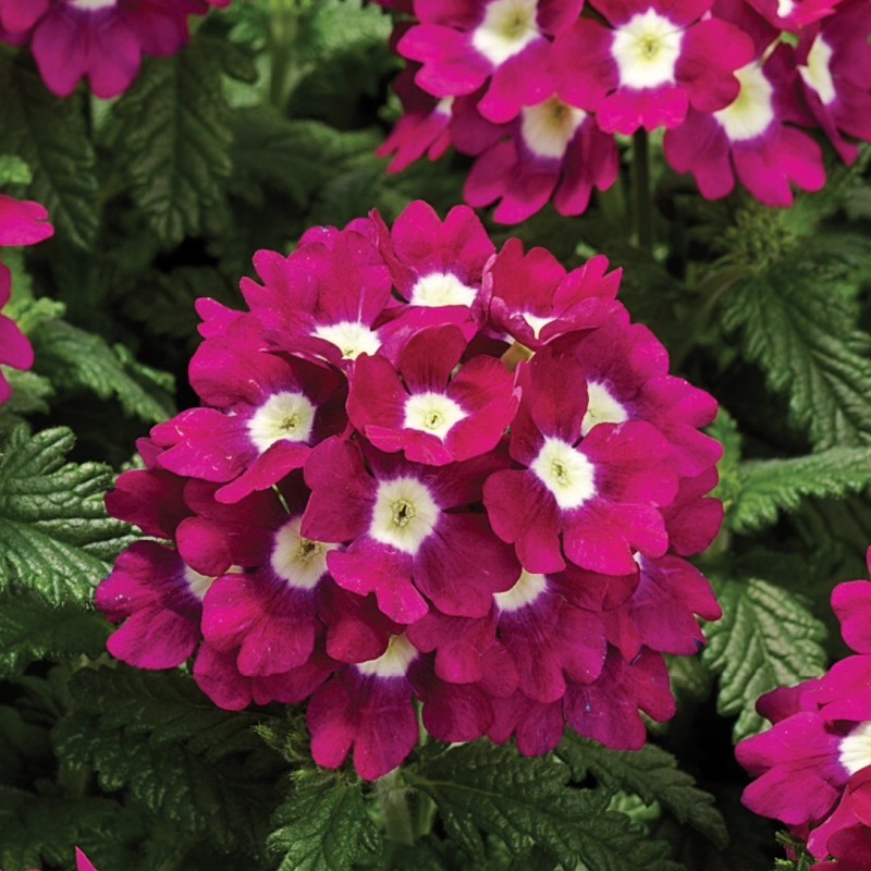 Растение вербена тускани бургунди виз ай - это настоящий художник среди садовых красок. Его пурпурно-белые цветы создают неповторимую атмосферу загадочности и изыска в вашем саду. Высотой до 25 см, это растение идеально подходит для групповых посадок, добавляя яркие акценты и привлекая внимание своей утонченной красотой.