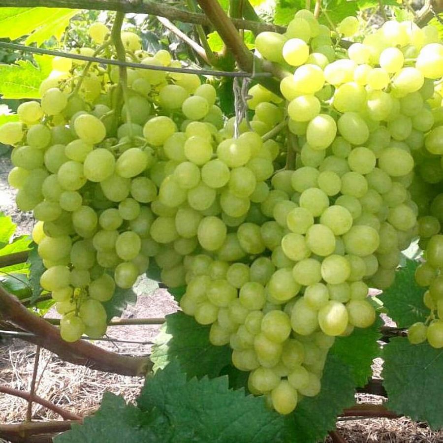 - Большие грозди, образованные крупными ягодами зеленовато-янтарного цвета. Мякоть хрустящая, сочная, отличных вкусовых качеств. Достаточно много ягод бессемянные. Неплохо переносят транспортировку и хранение. Чаще всего употребляются в свежем виде.