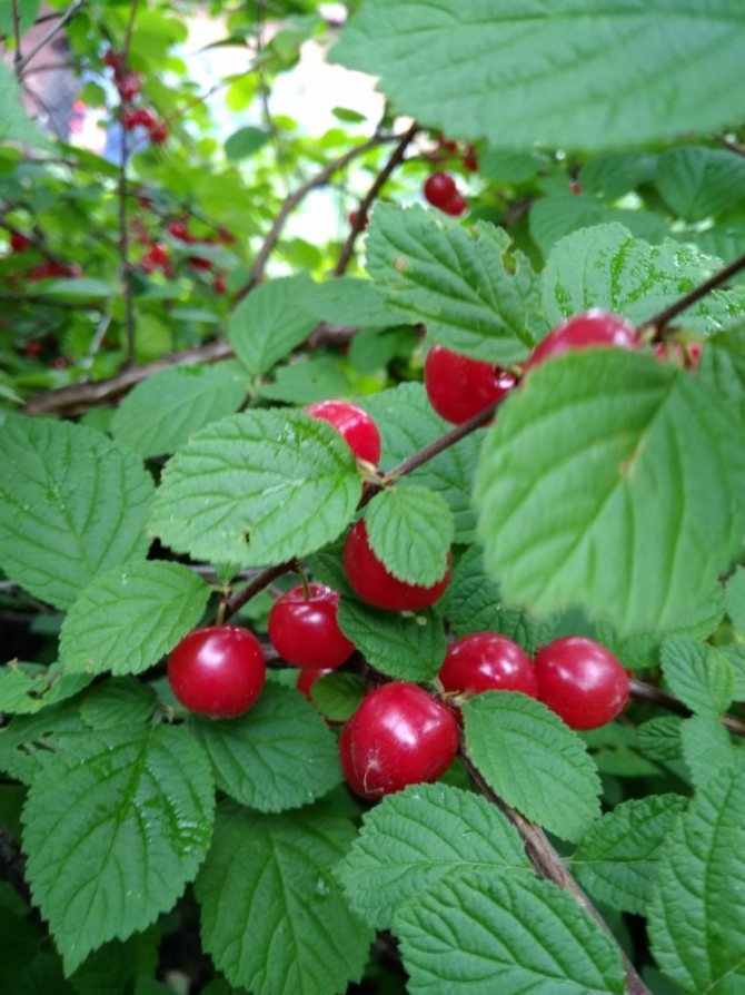 Саженцы вишни войлочной поднимаются до трех метров. Раскидистая крона делает нарядным любой сад. Плоды этого сорта ближе к сливе, чем к вишне. В ягодах содержатся органические кислоты, витамины и пектины. Существует ряд условий, которые необходимо соблюдать, чтобы вырастить восхитительный крупномер: