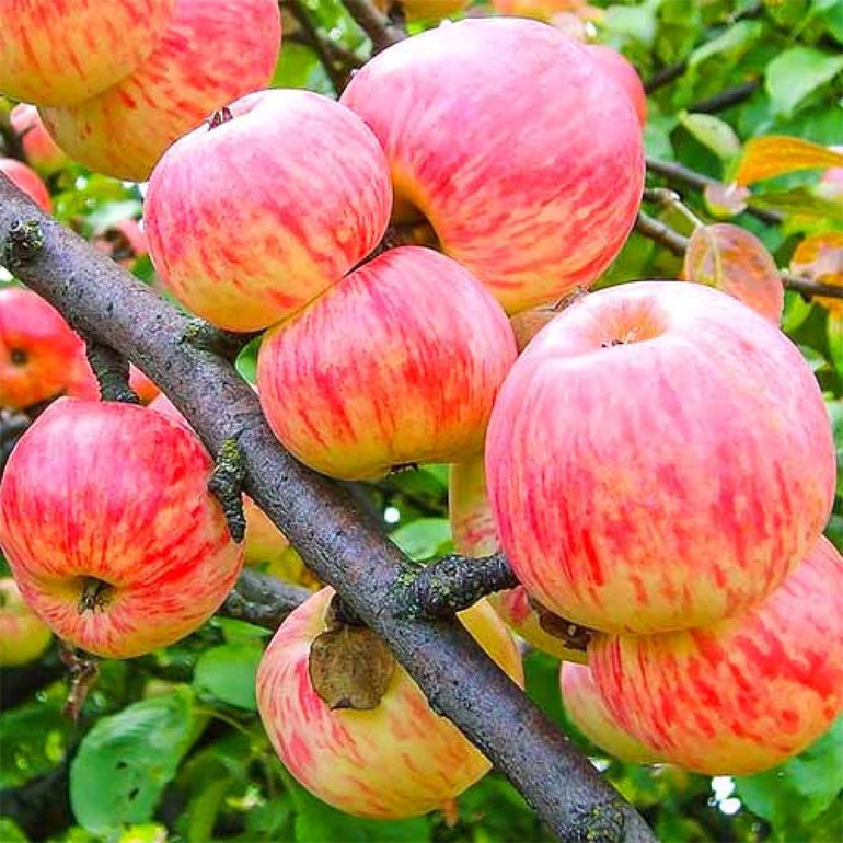 Саженцы яблони Коричное полосатое – один из самых старинных известных сортов, его описание встречается в литературных произведениях русских писателей. Популярность сорта обусловлена в первую очередь необычайной морозостойкостью. Характеристика сорта: - мощные деревья с богатой кроной; - средняя сопротивляемость крупномеров к болезням; - плоды весом примерно 70-90 гр.; - зрелые плоды желтого цвета с резкими полосками темно-красного цвета; - оригинальный вкус - небольшая кислинка с пряностью и легким запахом корицы. Потребительский период яблок при правильном хранении длится до января.