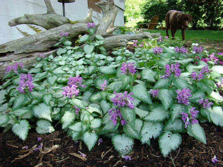 Саженцы Яснотки крапчатой Purple Dragon (Lamium maculatum) относится к наиболее известным устилающим почву растениям. Можно высаживать в любое место участка. Однако декоративные свойства появляются на солнечных пространствах. В высоту достигает 30 сантиметров. Почву необходимо подбирать плодородную, умеренно влажную. Перед высадкой необходим плотный каменный дренаж, так как растение не переносит застоя влаги. Сорт Перпл Драгон цветет с июня по август, розовато-пурпурными цветками. Чаще всего яснотка используется в создании цветников, рабаток, миксбордеров или для декорирования почвы между кустами.
