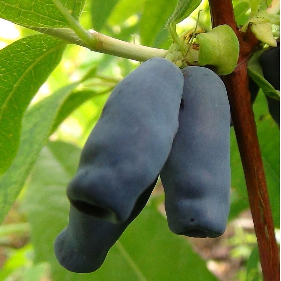 Саженцы жимолости съедобной Уссульга (Ussulga) вырастают в мощное растение до 2 метров в высоту с небольшим штамбом и прямыми побегами. В конце июня на кусте дружно созревают веретеновидные голубые ягоды с восковым налетом на кожице. Их вес 2 грамма. Вкус сладкий с приятным кисловатым освежающим послевкусием, дегустационная оценка 4,9 балла. Урожайность от 3,5 до 5 килограмм с растения. Сорт не доставит хлопот садоводу, он морозостоек, не поражается болезнями и вредителями. Для получения обильного урожая, необходимо обеспечить кустарник влагой и иметь опылитель, подходящий для этого сорта.
